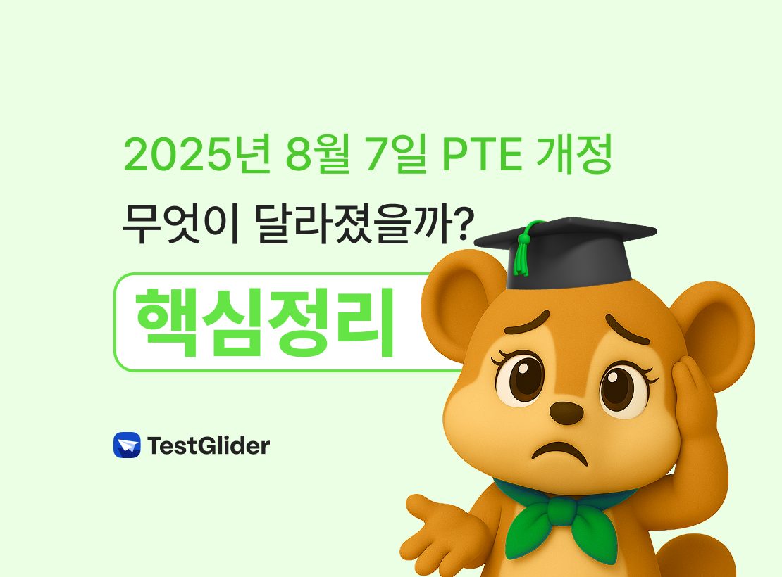 테스트글라이더에서는 2025년 8월 7일 개정된 버전의 PTE 모의고사를 무료로 풀어보실 수 있어요!